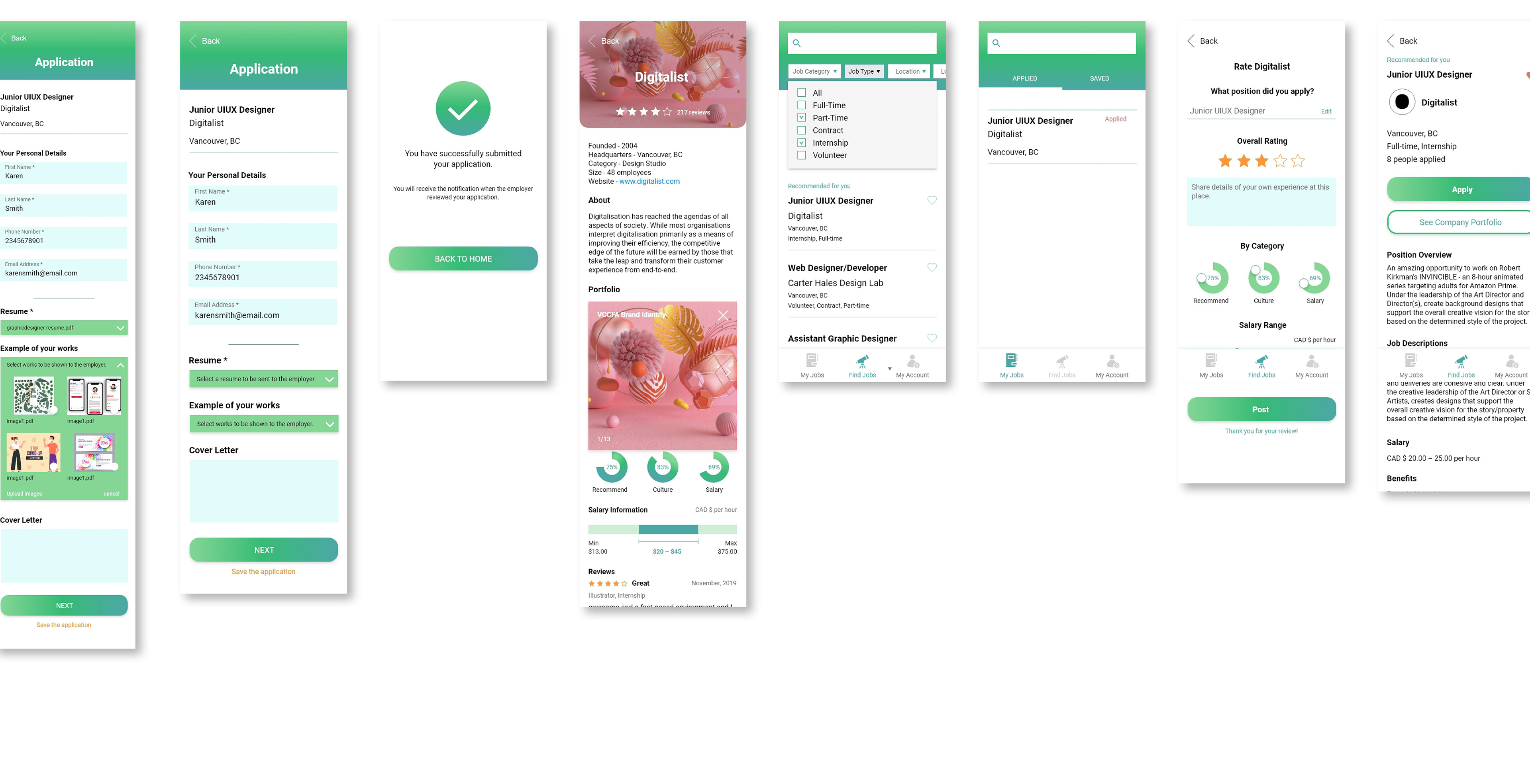 The recent COVID 19 outbreak puts both businesses and individuals in a difficult situation. This is especially serious for students and new graduates who are entering the workforce during this time. JUDE is a website/application designed for junior designers to let them explore the job opportunities.